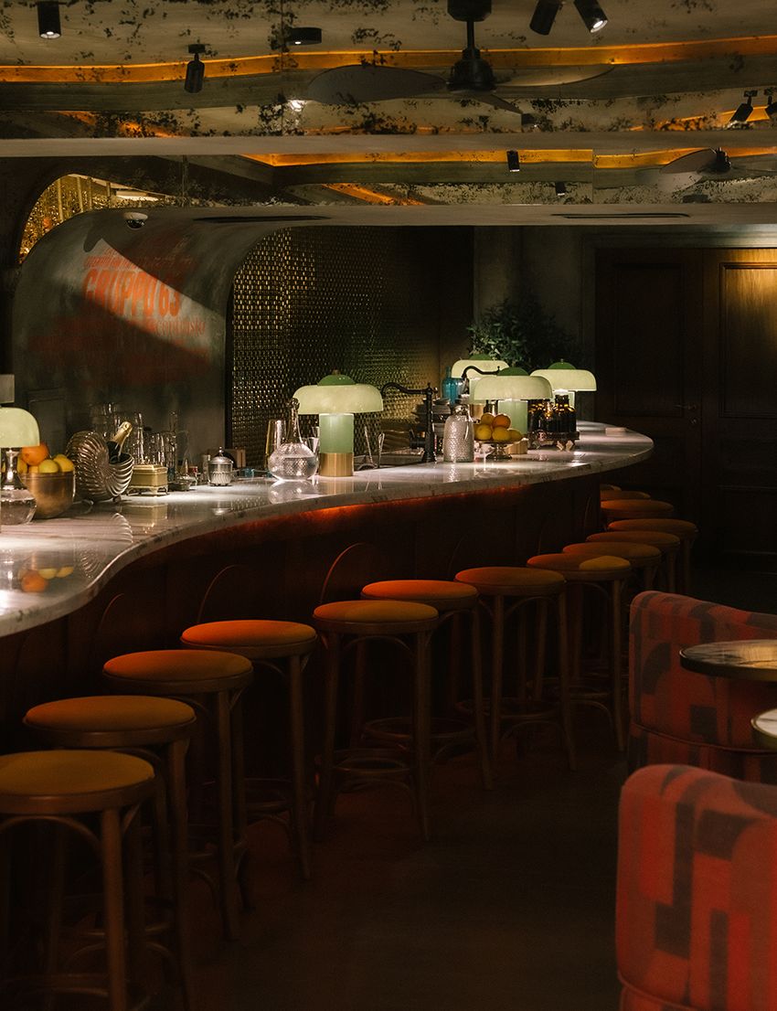 Авторские коктейли и классика, вроде эспрессо мартини, задают тон настроению. В качестве закусок настоятельно рекомендуем артишоки. Лучшие. Интерьер с состаренными фресками и желтым светом создает интимную и камерную атмосферу. К тому же, в баре есть секретная сигарная комната с хранилищем редкого алкоголя в ячейках. Это идеальное место для встречи с тайным любовником или просто для наслаждения хорошим виски. Бар найти несложно, он находится прямо под Renée Café.