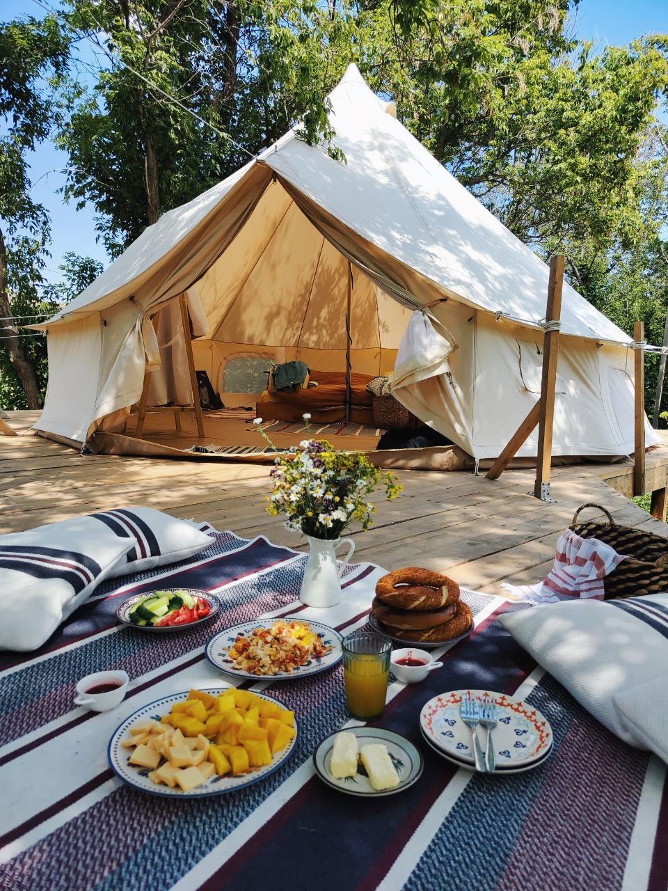 Umbra – идеальный вариант для тех, кто хочет убежать подальше от городского шума и словить дремотную тишину. Зона отдыха у подножия Талгарских гор подойдет для любителей глэмпинга (glamorous camping). Такой формат предназначен специально для тех, кто хочет расслабиться на природе, не жертвуя привычными удобствами. Здесь гости живут не в палатках, а в роскошных домах с электричеством, кроватью и теплым одеялом. Ближе к вечеру можно развести костер, согреться и пожарить маршмеллоу. В Umbra проводят и кинопоказы под открытым небом. Услуга доступна в любой сезон, кроме зимнего. Ко всему прочему, это pet-friendly отель. С собой на отдых вы легко можете взять и любимого питомца.