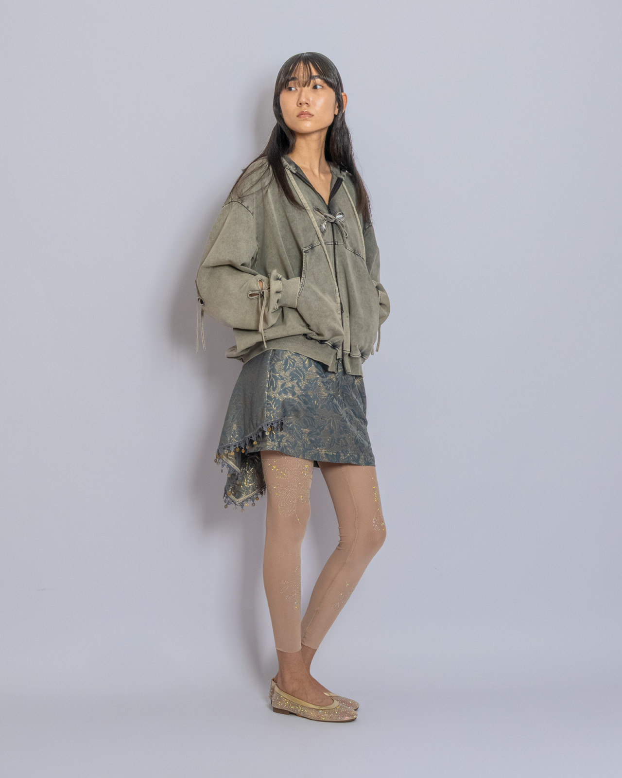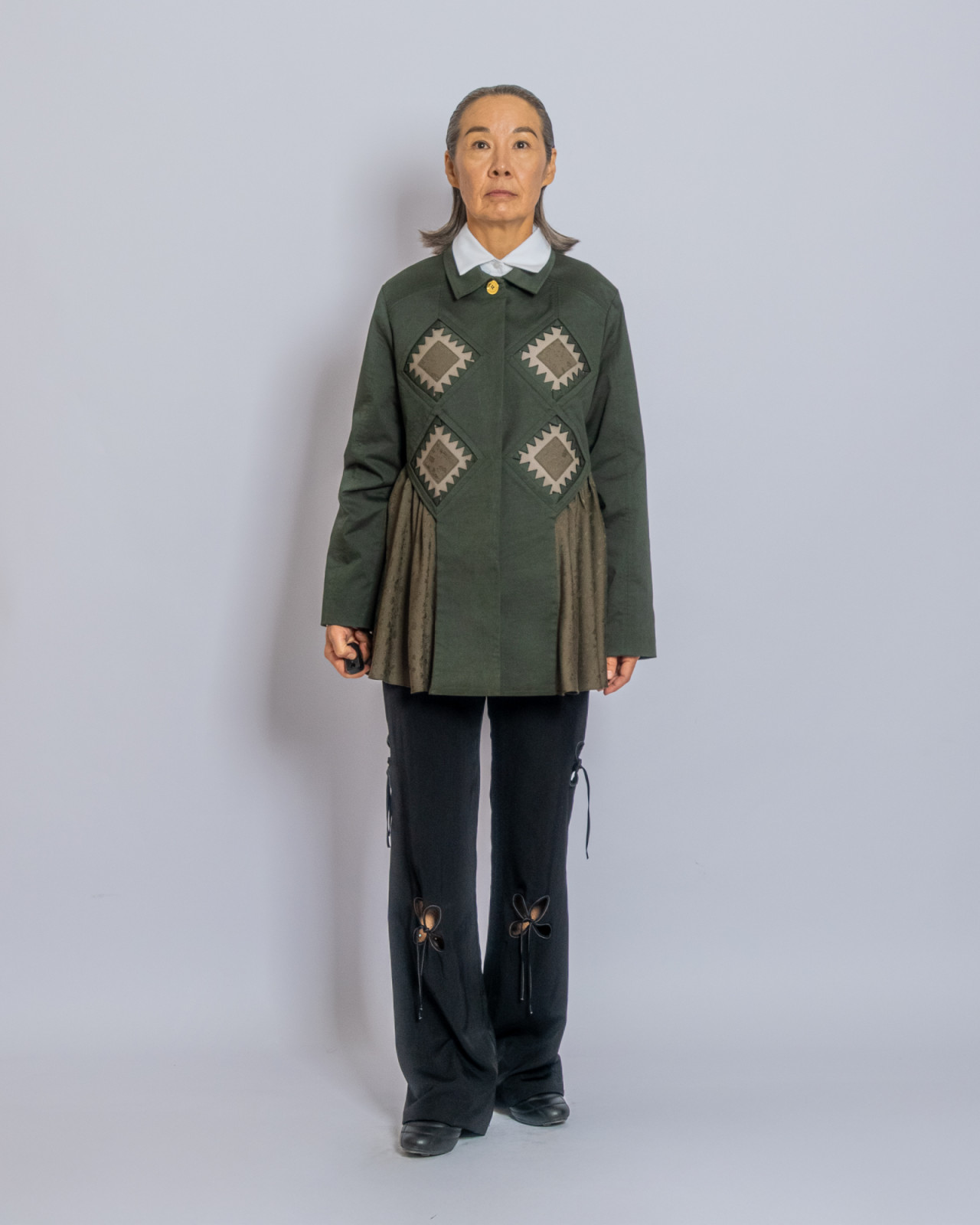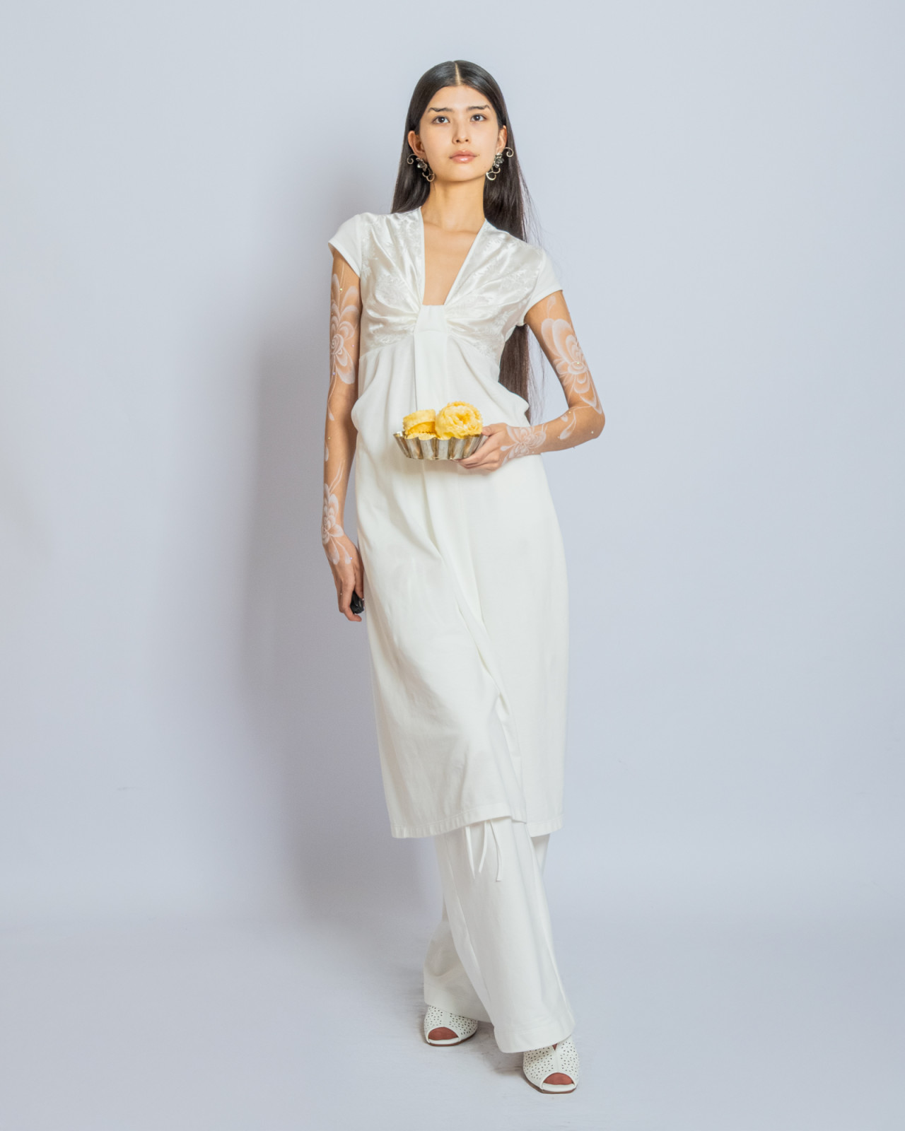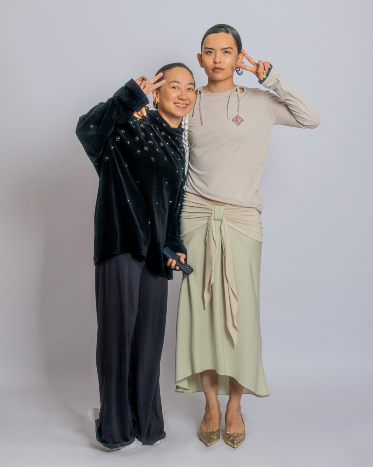 В прошлый четверг в Центральном Государственном музее Алматы прошел показ J.KIM весна-лето 2026 Quroq. Пока гости рассаживались под гул прожекторов, за кулисами мы запустили маленький эксперимент: в руки моделей попали кликеры – пульты дистанционного спуска. В итоге бэкстейдж превратился в серию интимных автопортретов, где взгляд камеры – это их собственный. Нейтральный белый фон словно выключил шум суеты бэкстейджа, оставив только ткани, жесты и дыхание людей. Получились живые кадры с честными силуэтами без фильтров, где видно, как одежда будет выглядеть в реальной жизни.