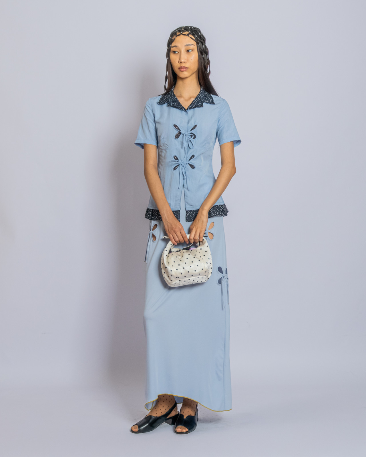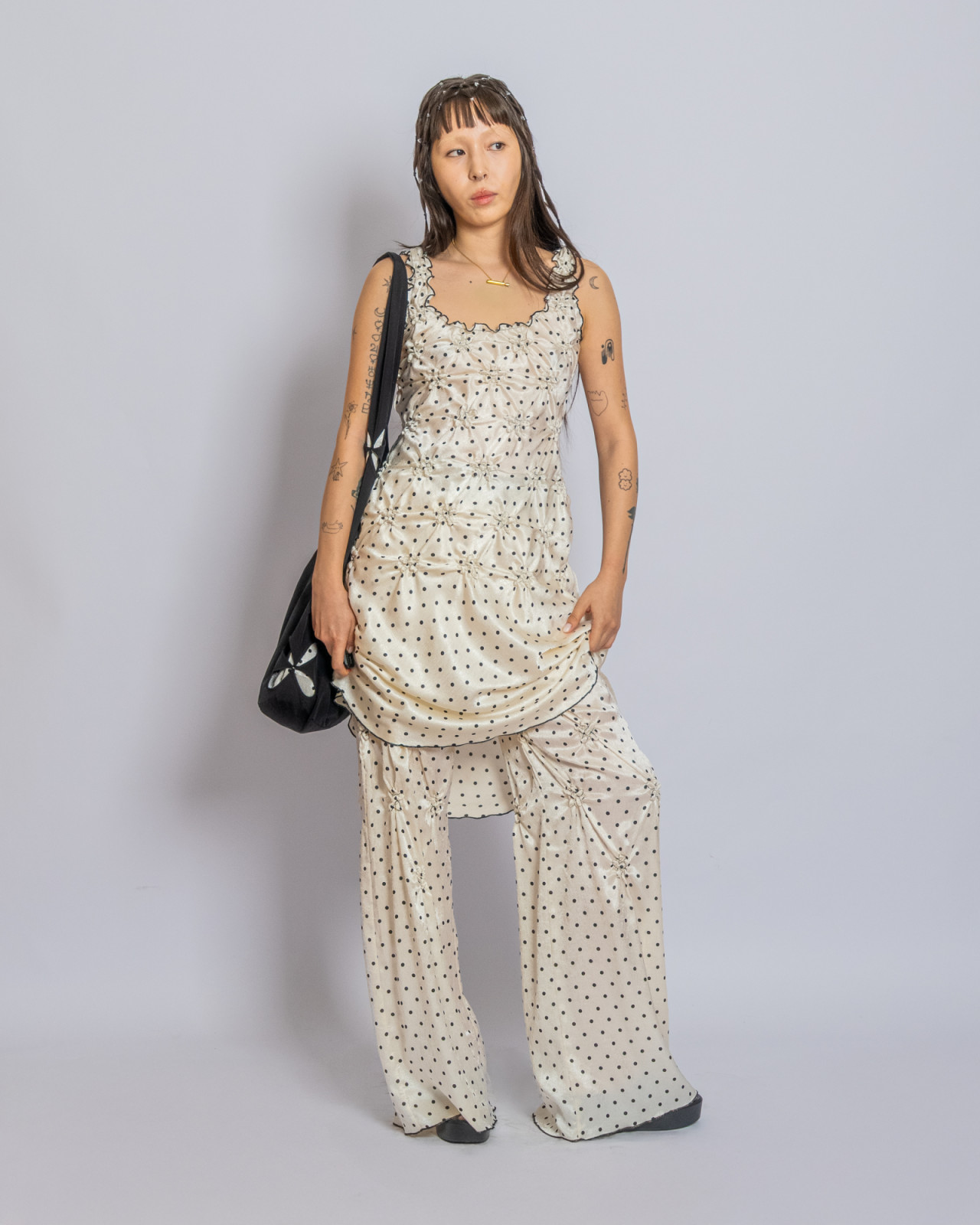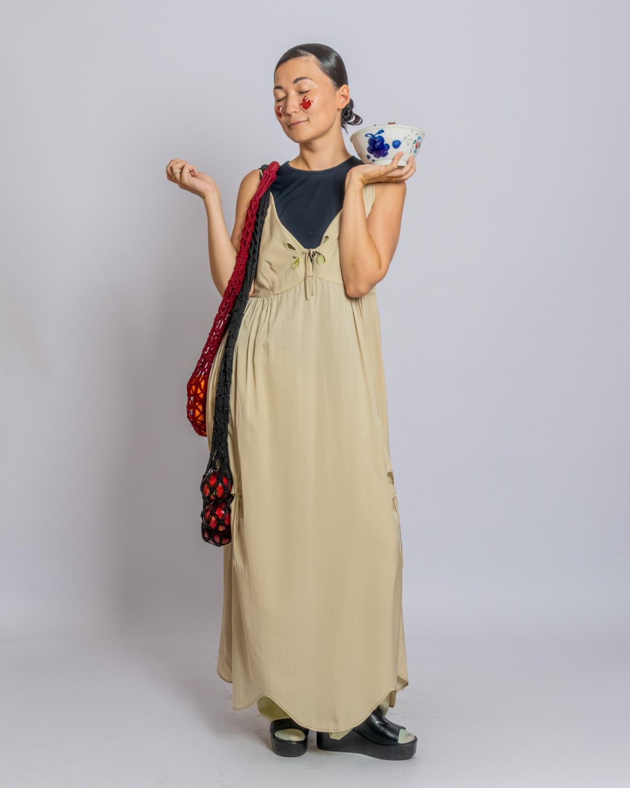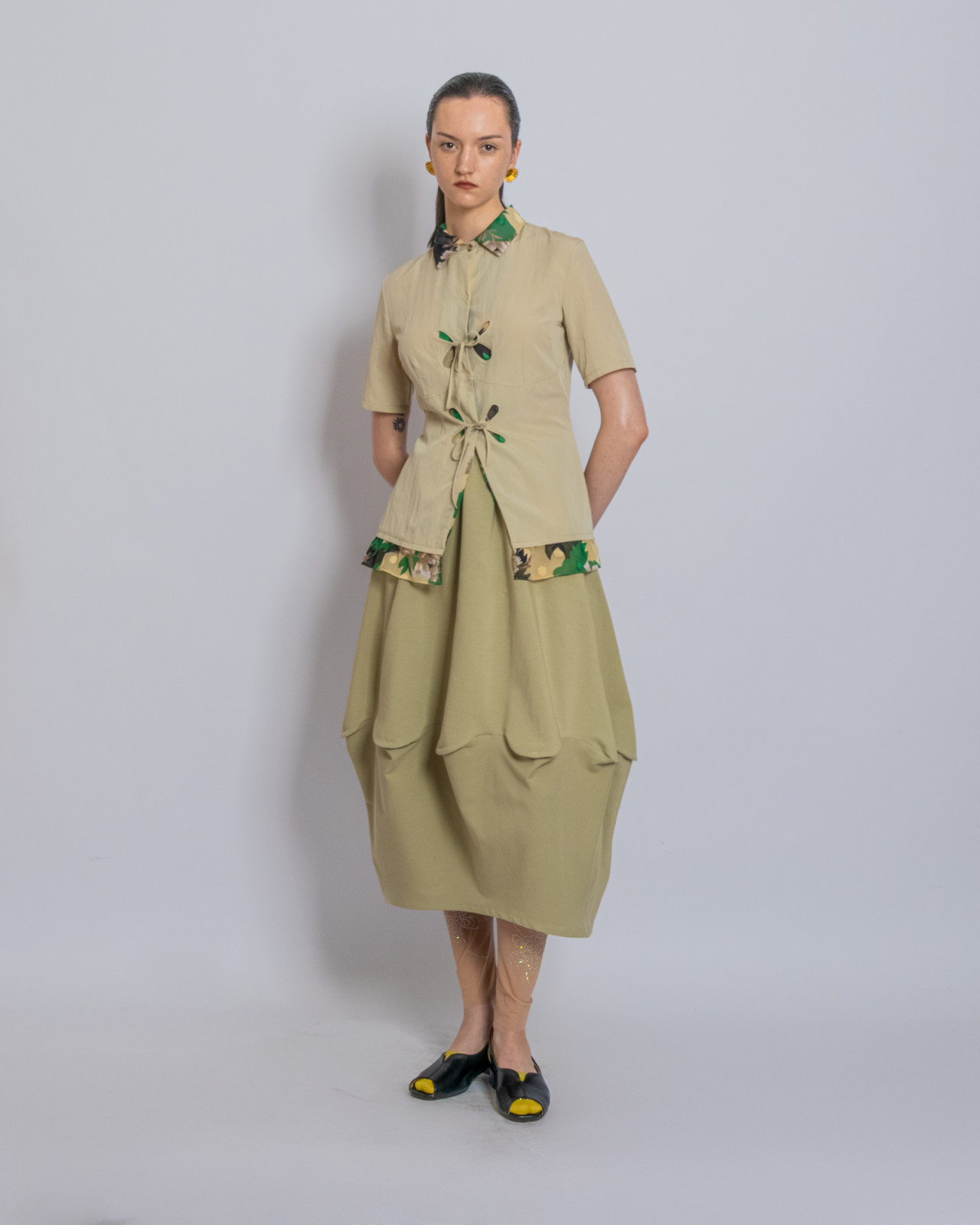 В прошлый четверг в Центральном Государственном музее Алматы прошел показ J.KIM весна-лето 2026 Quroq. Пока гости рассаживались под гул прожекторов, за кулисами мы запустили маленький эксперимент: в руки моделей попали кликеры – пульты дистанционного спуска. В итоге бэкстейдж превратился в серию интимных автопортретов, где взгляд камеры – это их собственный. Нейтральный белый фон словно выключил шум суеты бэкстейджа, оставив только ткани, жесты и дыхание людей. Получились живые кадры с честными силуэтами без фильтров, где видно, как одежда будет выглядеть в реальной жизни.