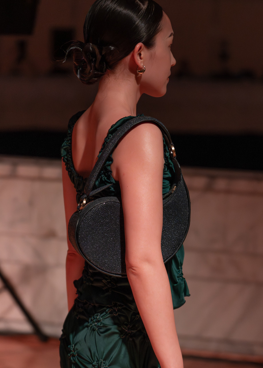 Кел, шәй ішейік (с каз. – «Пошли пить чай»), – так говорила моя апа и вытаскивала на стол все угощения, что были в доме. Для меня это не просто воспоминание, а то самое чувство тепла из детства. Именно это ощущение материнства и домашнего уюта дизайнер Женя Ким, впервые став мамой, воссоздала в своей коллекции весна-лето 2026 – Quroq. На показе в Центральном Государственном музее центром стал семиметровый стол – символ семьи, за которым собираются самые близкие.