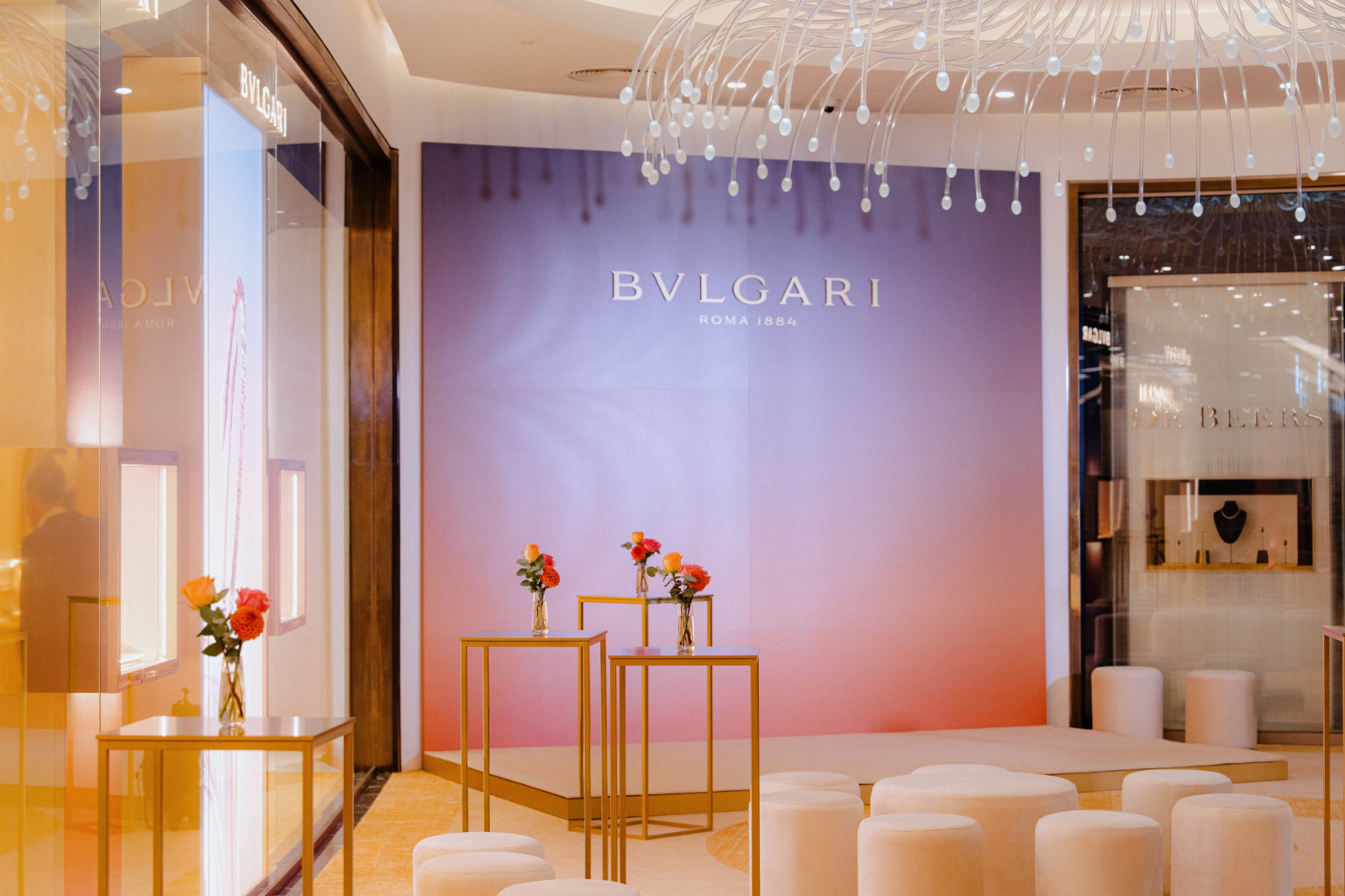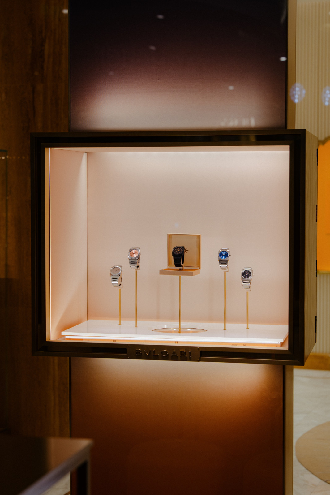 В Esentai Mall состоялось открытие обновленного флагманского бутика BVLGARI. Пространство стало вдвое больше и получило новый дизайн, вдохновленный историческим магазином бренда на виа Кондотти в Риме. Полупрозрачные витрины от пола до потолка, золотистые и светлые тона, панели из травертина и узнаваемые люстры создали эффект полного погружения в мир итальянского ювелирного дома.