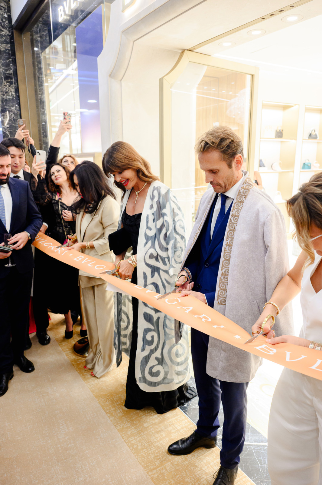 Гостями вечера стали супермодель и фотограф Хелена Кристенсен, актриса Ксения Раппопорт, музыканты Moldanazar и M'Dee. Вместе с директором BVLGARI по Европе Бенжаменом Бофисом и Гаухар Абыкаевой, главой компании Sansi, Хелена перерезала символическую ленточку. В числе гостей также были генеральный директор регионального отделения BVLGARI по странам СНГ Олег Кайдалов, генеральный директор Esentai Mall Таир Балгабеков, генеральный директор Ritz Carlton Almaty Александр Селл, а также Ерке Есмахан, Раим, Зарина Ева, Зауре Розмат, Карлыгаш Мухамеджанова и другие.
