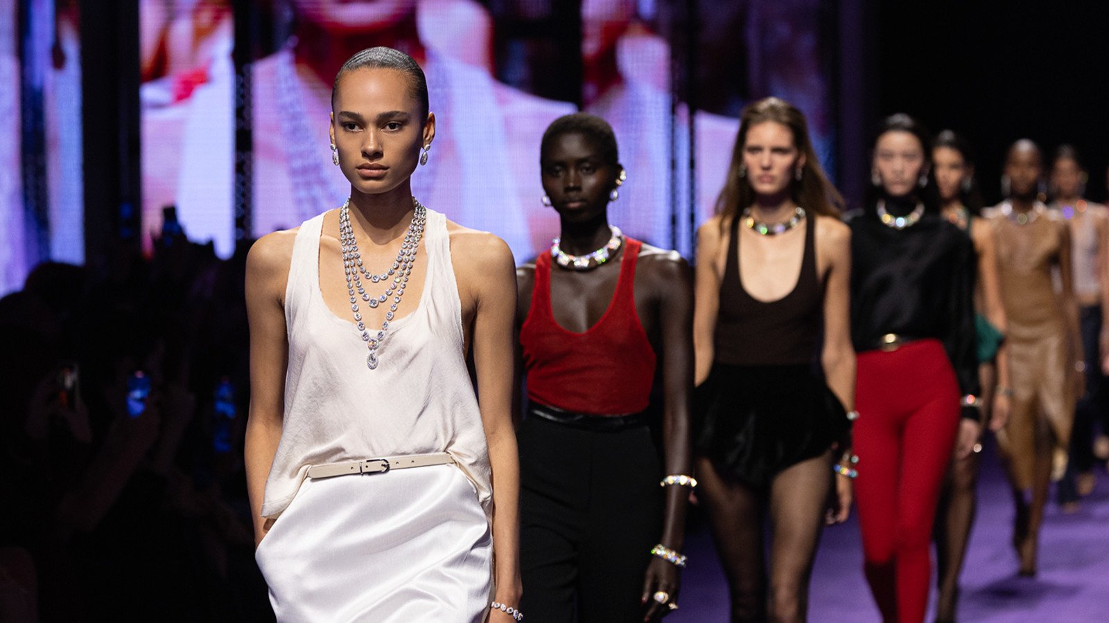На первых рядах были друзья дома и мировые звезды: Карла Бруни, Ева Герцигова, Кико Мидзухара, Саймон Гун, Ice Spice, Balqees, Ким Да Ми, Тейлор Хилл, Деми Ловато и другие. Вечер открыл Youssou N’Dour – живой голос Сенегала, затем афробит от Davido и Omah Lay, финальный ритм держала диджей Shivana.